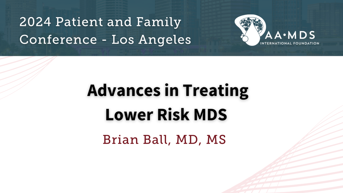 Learn about recent research and clinical advances for treating Low-Risk MDS, or Myelodysplastic Syndromes in this session from Dr. Brain Ball.