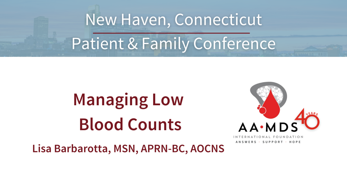 Lisa Barbarotta describes techniques to help manage low blood counts in this session.